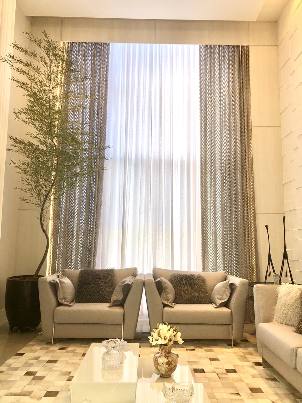 - Funcionalidade: além de decorar, a cortina protege contra a entrada excessiva de luz, ajuda na acústica do ambiente e pode até colaborar com o isolamento térmico.